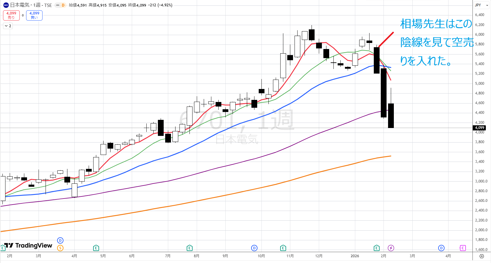 先ほどのリスナーさんのご質問にあるNECですが、相場先生は直近の下げを獲ったそうです。