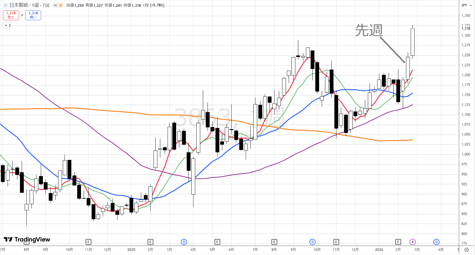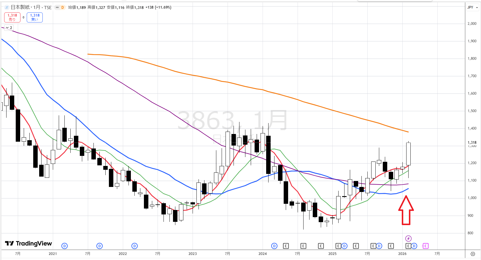 ただ上位足を見ても明確にわからない時もあります。ただし日本製紙に関しては明らかに月足でわかります。