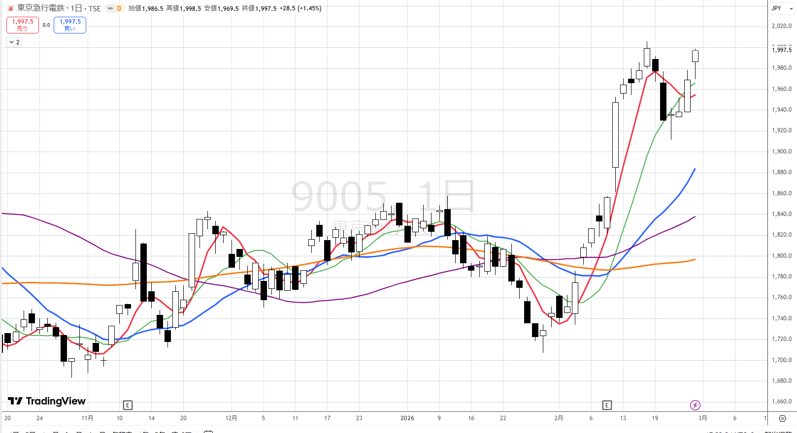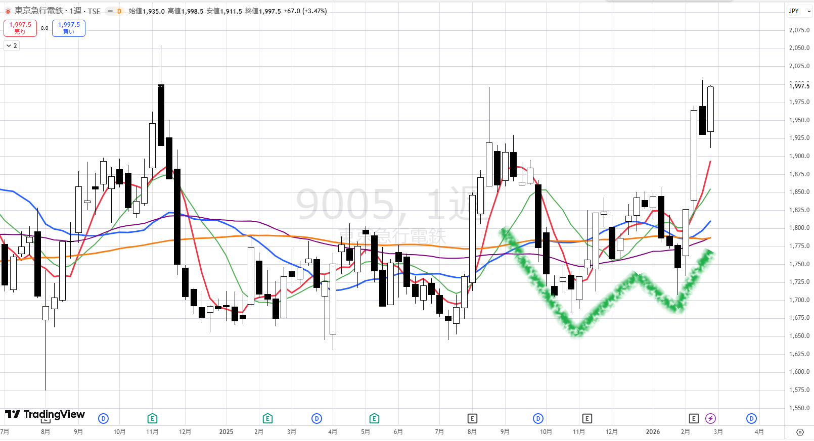 9005東急を狙っていて、もう少し上がってくれたらよかったのですが、一旦買いを入れておきたいと考えています。