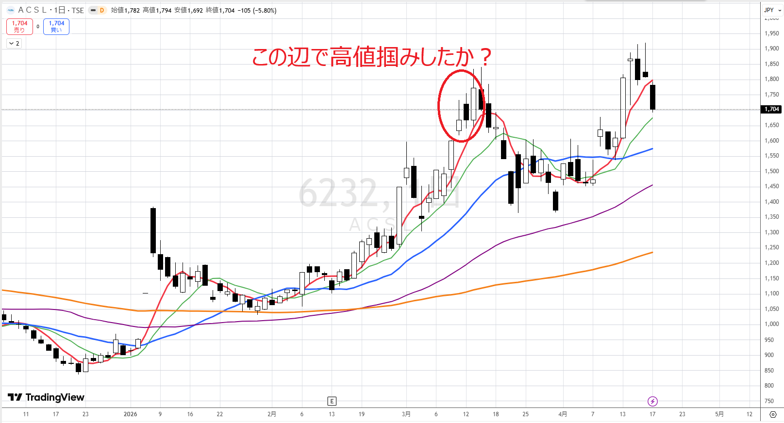 6232ACSLを高値で買ってしまいましたが、売りをエントリーしたほうがよいでしょうか?