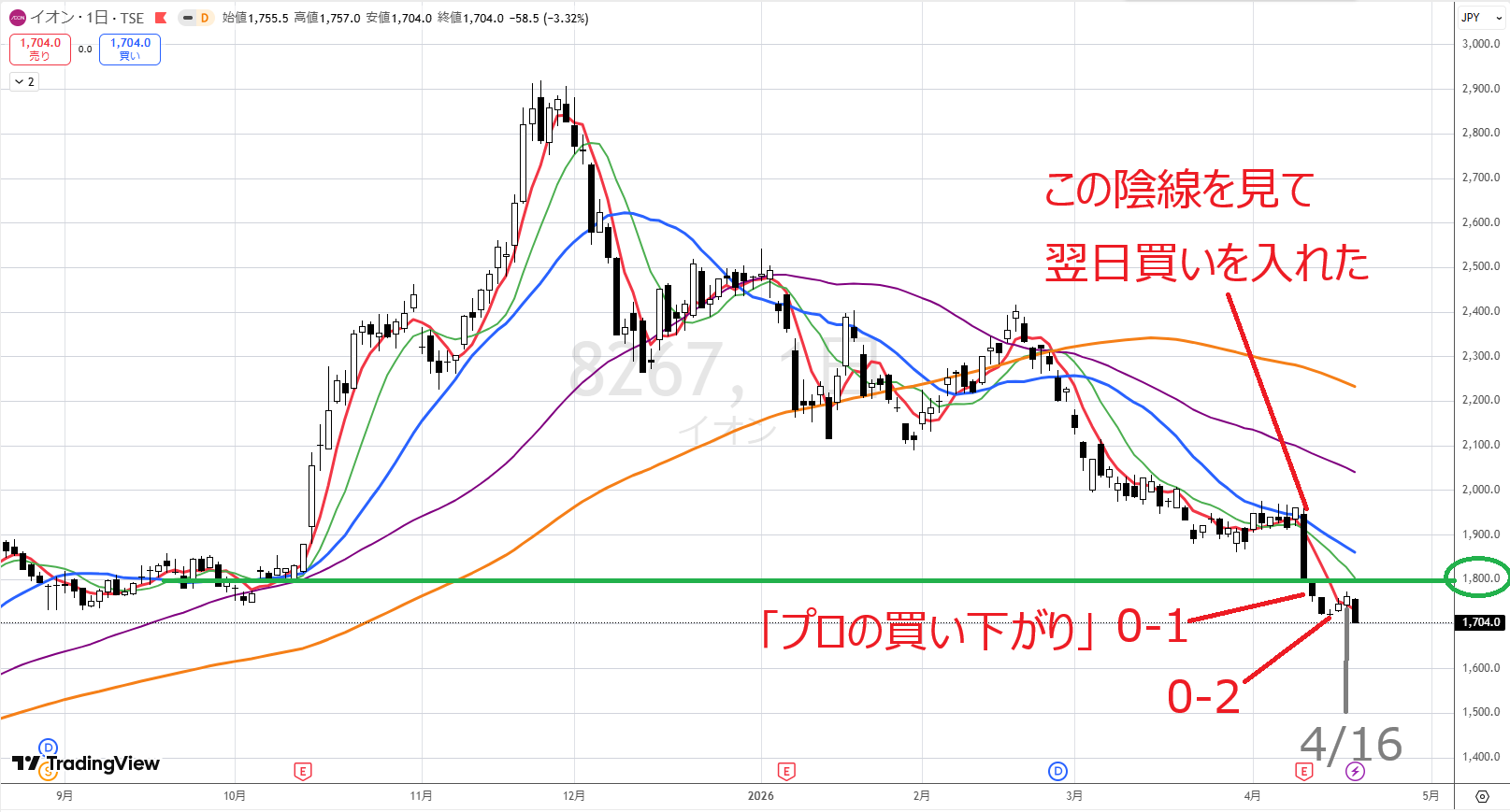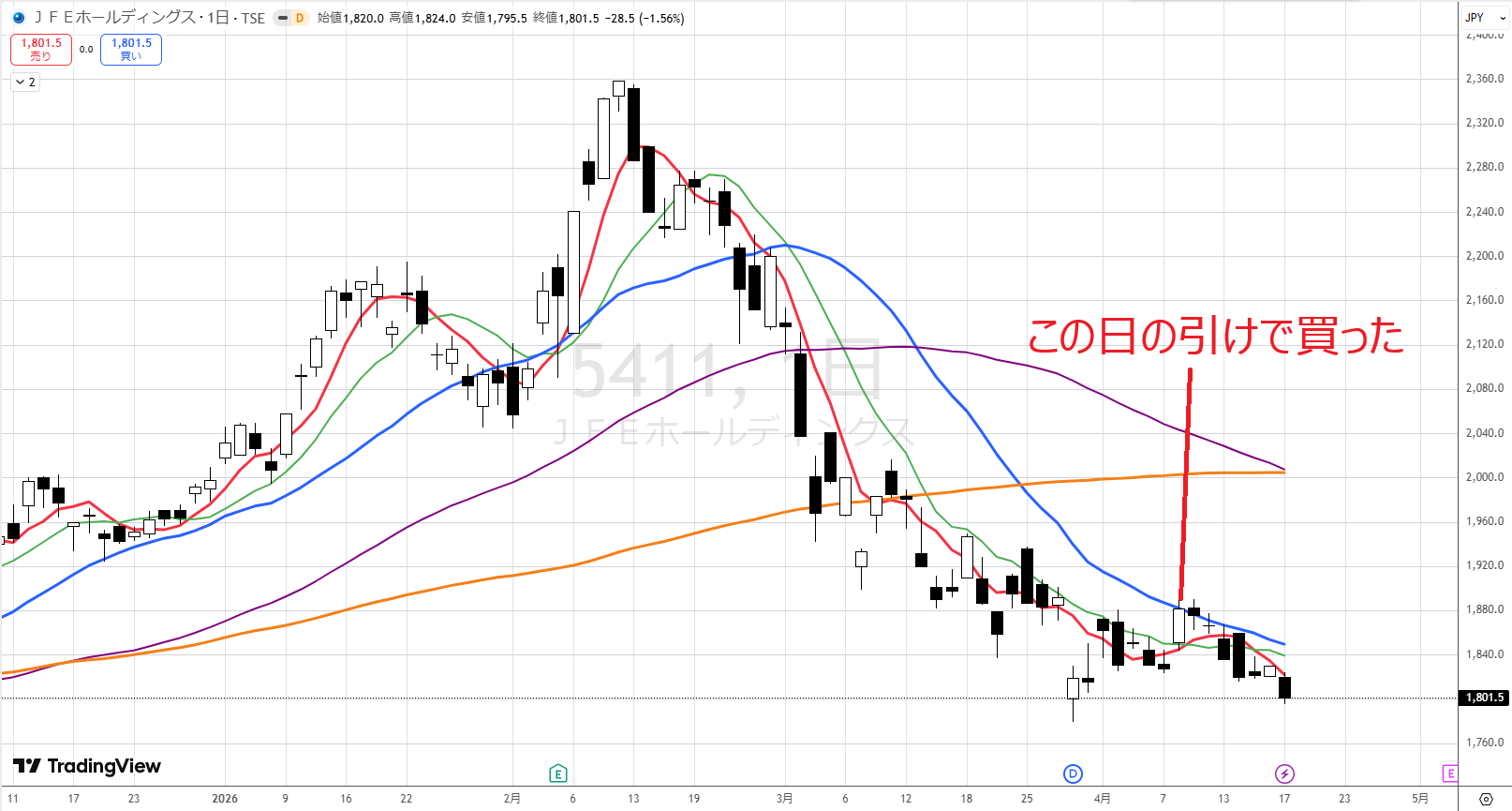 先週の金曜日(4/10)に買ったんですね。木曜日は大幅下落となりました。そして、過去のしこりに入りました。