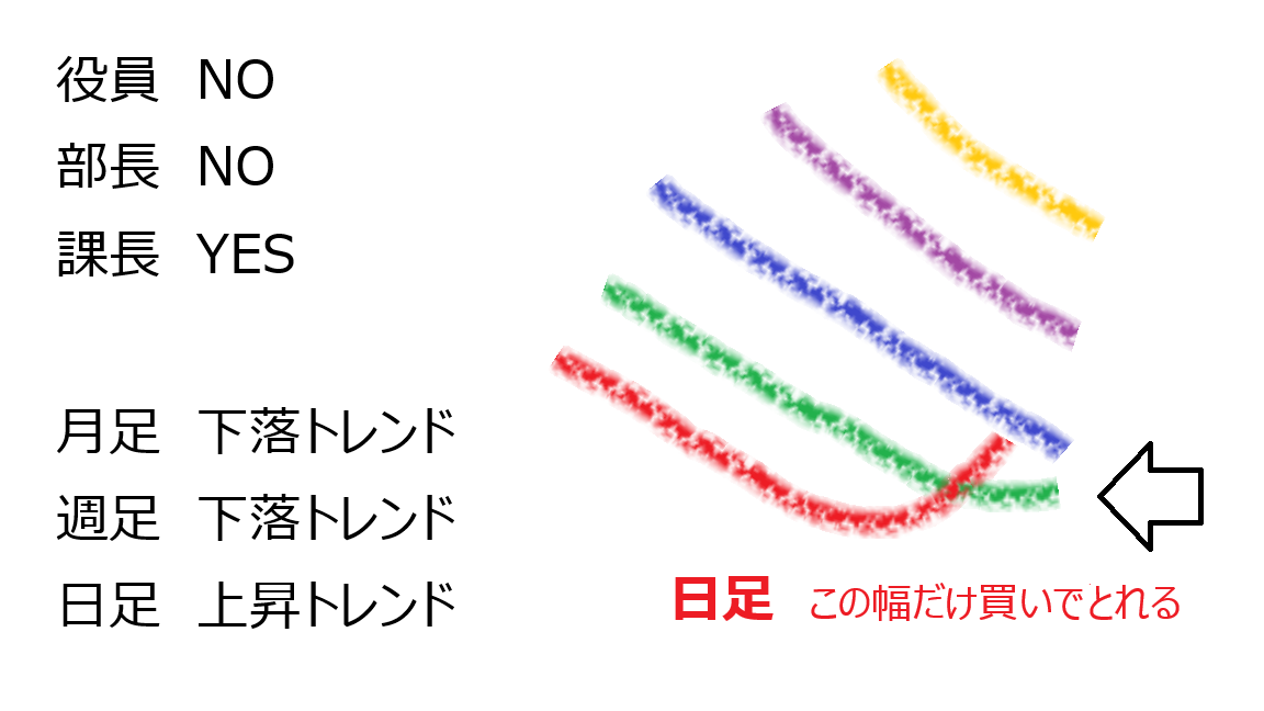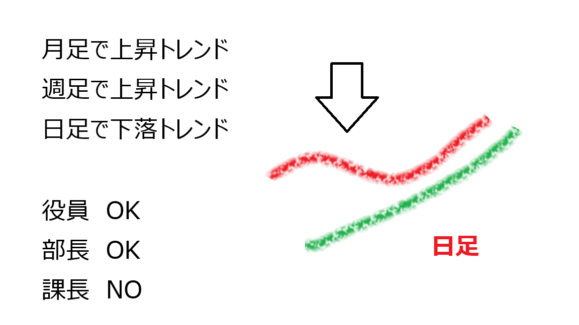 つまり、トレンド転換の時だけは、最終的には課長が最初に言ったとおりになります。それ以外の時はすべて、役員の言ったとおりに最終的になります。