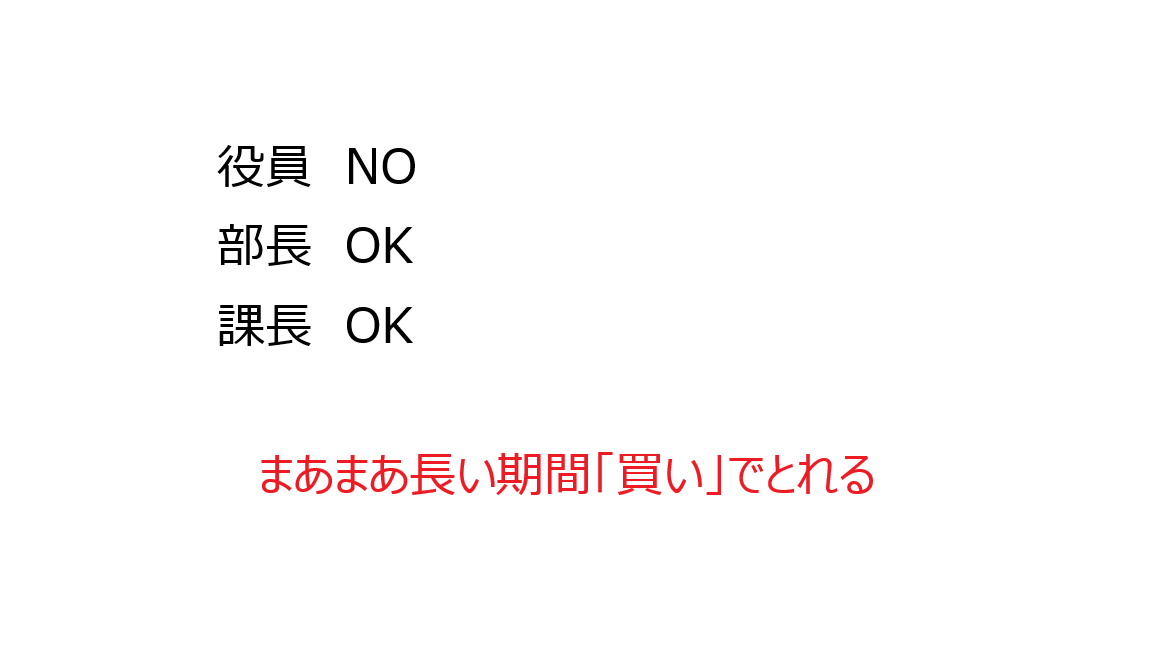 次の例では、役員が「NO」と言っていますが、部長と課長は「YES」と言っています。