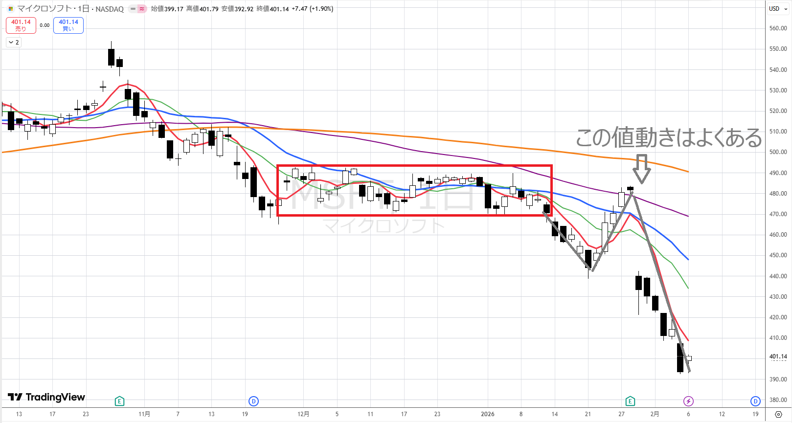 従って、現状ではMSFTは買いの候補にはなりえません。
