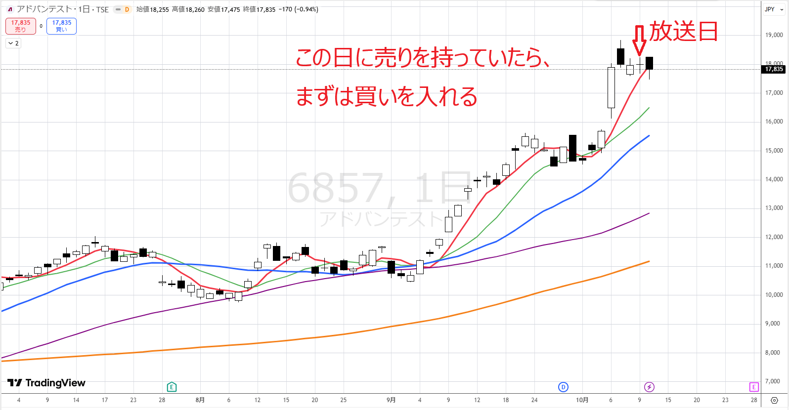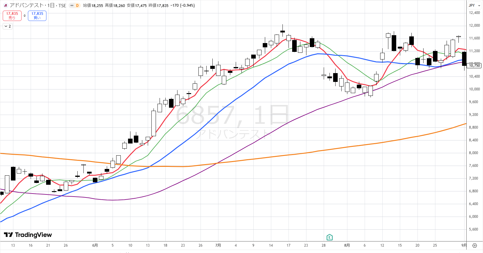 アドバンテストで塩漬けになっているということは、空売りを入れたけれども上がってしまったと思います。