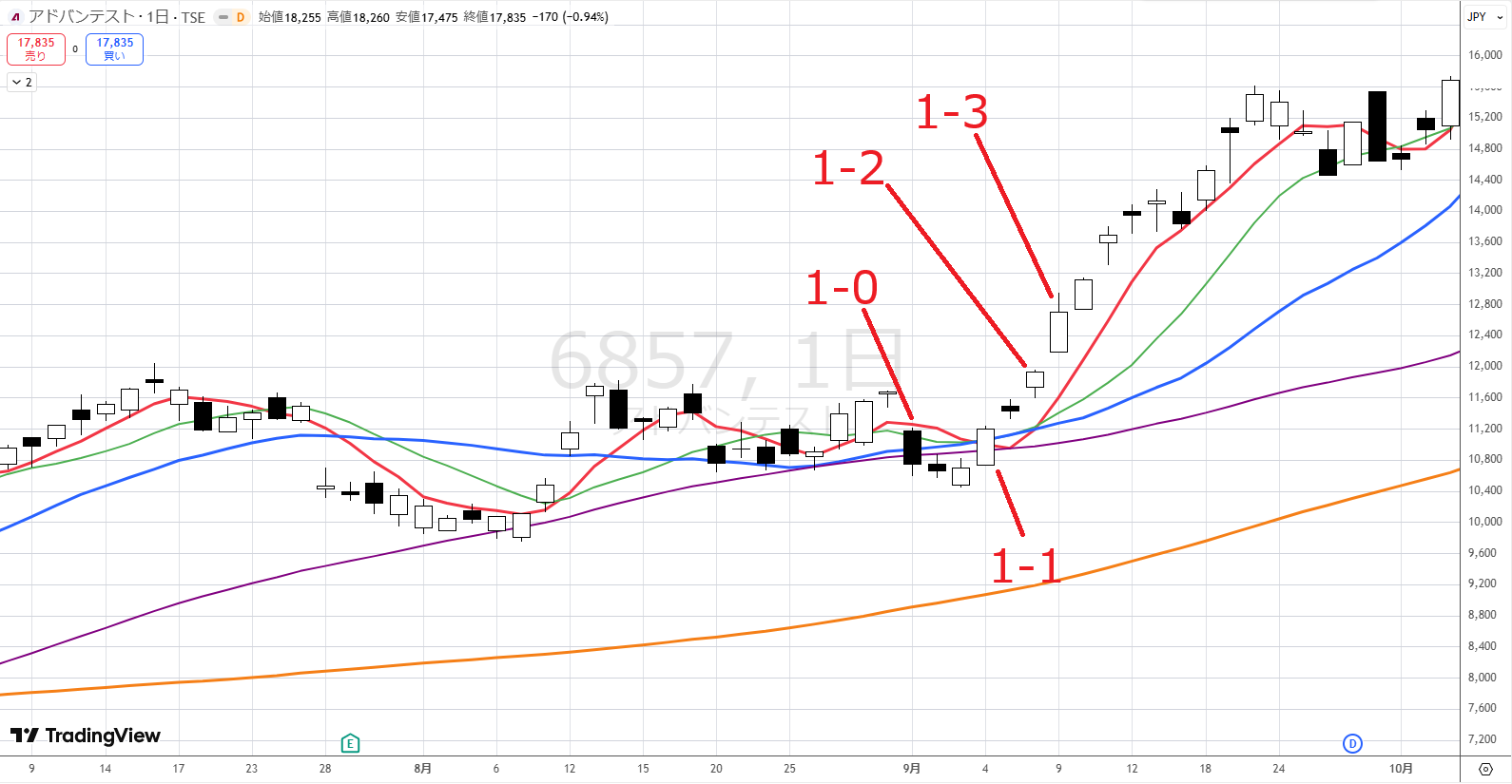 先ほどのアドバンテストは週足でのトレードでしたが、次は日足でトレードしてみます。