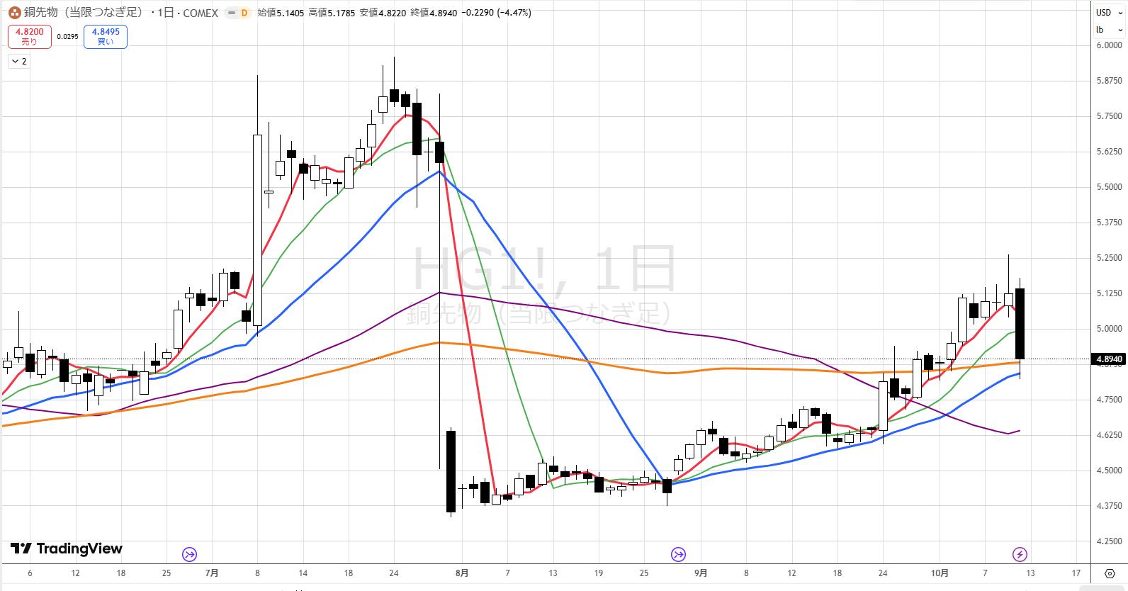 銅の買いとココアの売りを持っています。手仕舞いのタイミングを教えてください。