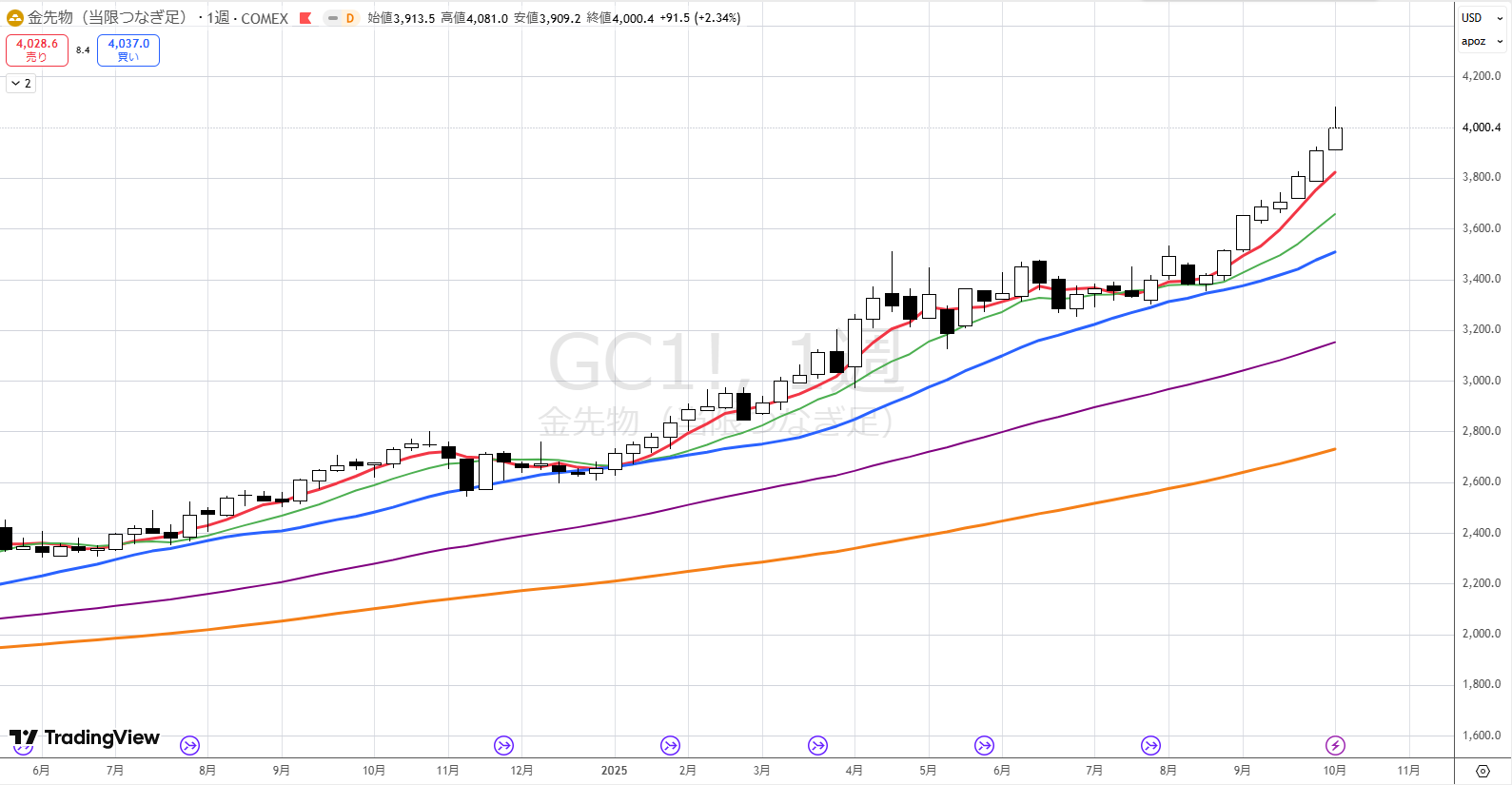 週足を見ても元気よく上げていますので、なかなか弱らないです。
