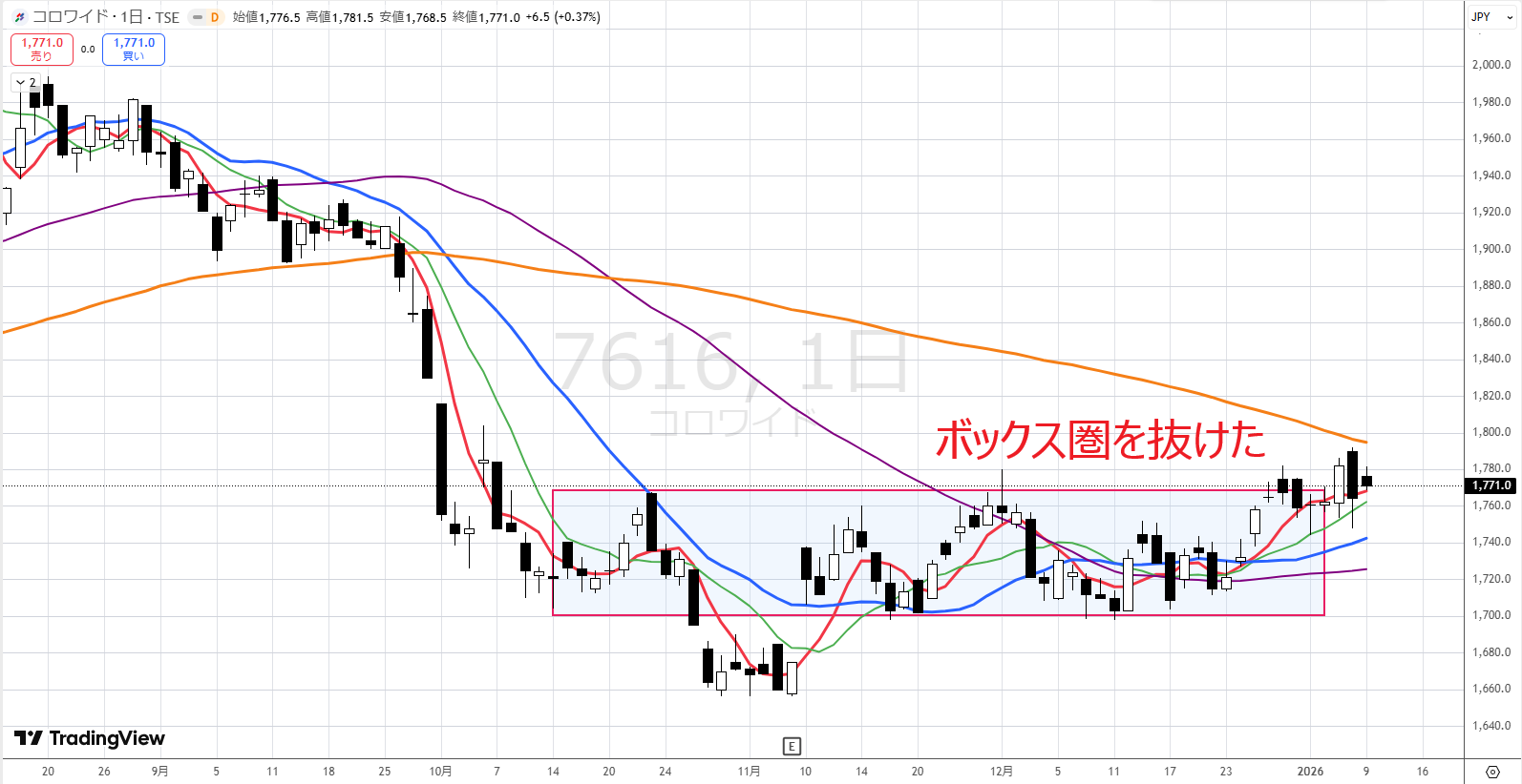 コロワイドはそろそろボックス圏抜けそうな気がします。どうでしょうか?