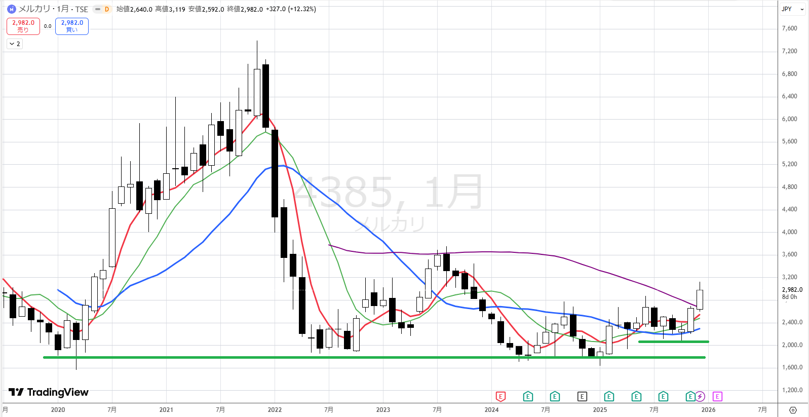 週足、月足を見てみますと、まだ元気に上げているように見えます。